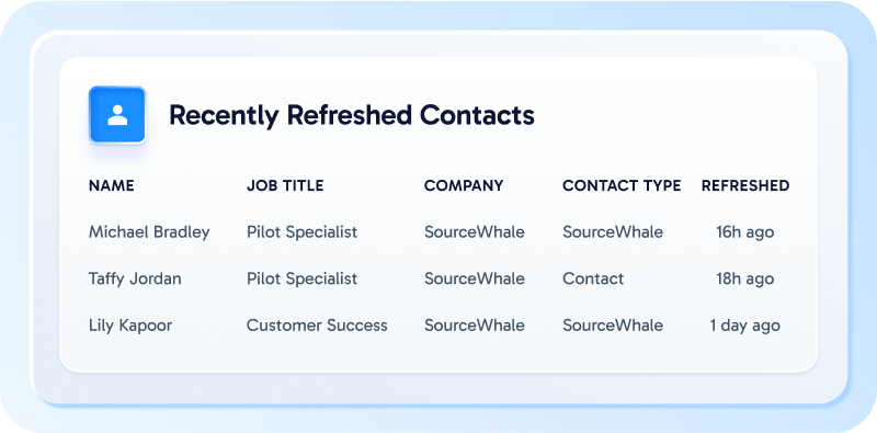 Recruitment agencies have a 60% to 70% chance of winning business from past clients – even years later. Data Refresh makes it easy to reconnect with updated, high-potential contacts and turn old relationships into new revenue.