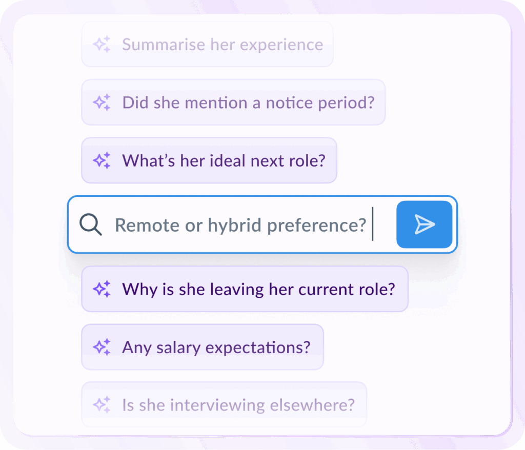 Get accurate, structured notes logged to JobAdder without lifting a finger. Industry-specific templates, seamless sync, and no manual input required.